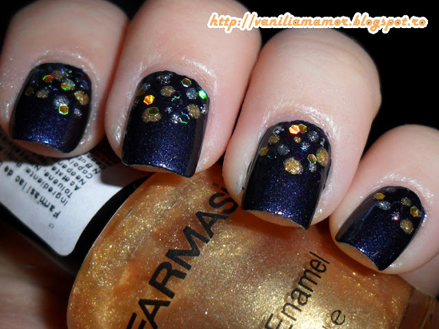 | Használt lakkok: Farmasi átlátszó, Avon MATTE Inky Blue, Rapsodi 351, Farmasi arany |